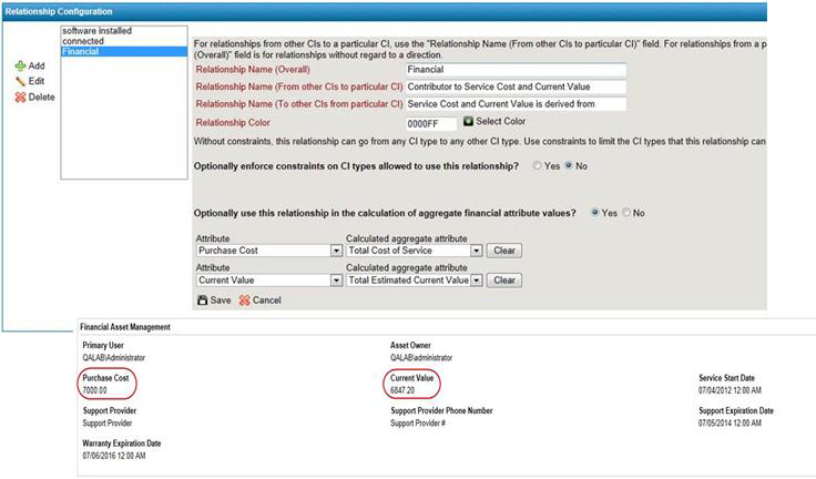 • Associate asset financial, warranty and support data with their respective configuration item in the Service Core CMDB